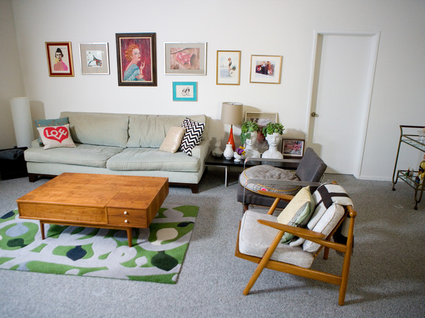 The next step is to build layer 1, which is the first of the two styles, in the room. When layer 1 is complete, one spouse may be very happy or they might both be a little put-off. The first layer for this home was referred to as "Mad Men Chic," which was based on the husband, who preferred masculine, but stylish mid-century furnishings.