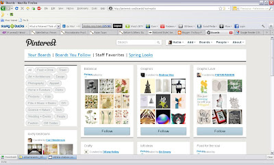 Seriously, Pinterest is a hotbed of inspiration. It's all photo-related. If you see a photo on a website somewhere, you can "pin it" to your board. You then add a short note/message about it. You can use Pinterest to keep track of all the great things you've come across, which is why I originally requested an account. (I always have so many internet windows/tabs open on my computer for things I don't want to forget about.) But once I got there, I realized that it's a totally public site that allows you to see the cool stuff other people are "pinning" as well.