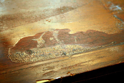 For those of you who don't know, it's called tannin bleed. Tannin is a chemical from the natural wood that was extracted to the surface because of the water in the latex primer. It's common with certain species of wood, including mahogany. I had heard of it but hadn't remembered to keep the wood species in mind before I used the latex primer. Lesson learned (and not my first of the project). I switched to an oil-based primer instead, as recommended by furniture refinisher Natty by Design. I sent her a panic email but she reassured me that it's okay to use oil primer on top of latex primer and that all would be well.