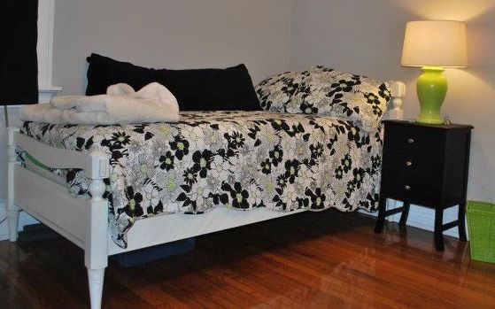 Now that I see the bedding is mostly light-colored, I might have preferred for the bed frame to be black, but white still works. And if she's anything like me when I was a student (or, who am I kidding, like me now), she'll want to change her bedding up now and then for a new look.