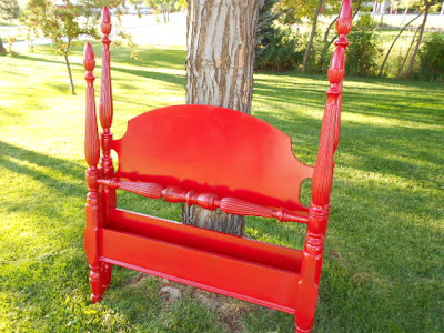 6. When I set out to paint a vintage oak bed for our college-age cousin Molly, I was hoping she'd go for a really bold color. Instead, she played it safe and went with white to keep things neutral, so I'll live vicariously through this red bed painted by Melanie at Oops! Redone. What lovely detailed posts it has, too! I'd love to see it all made up with bedding and pillows.