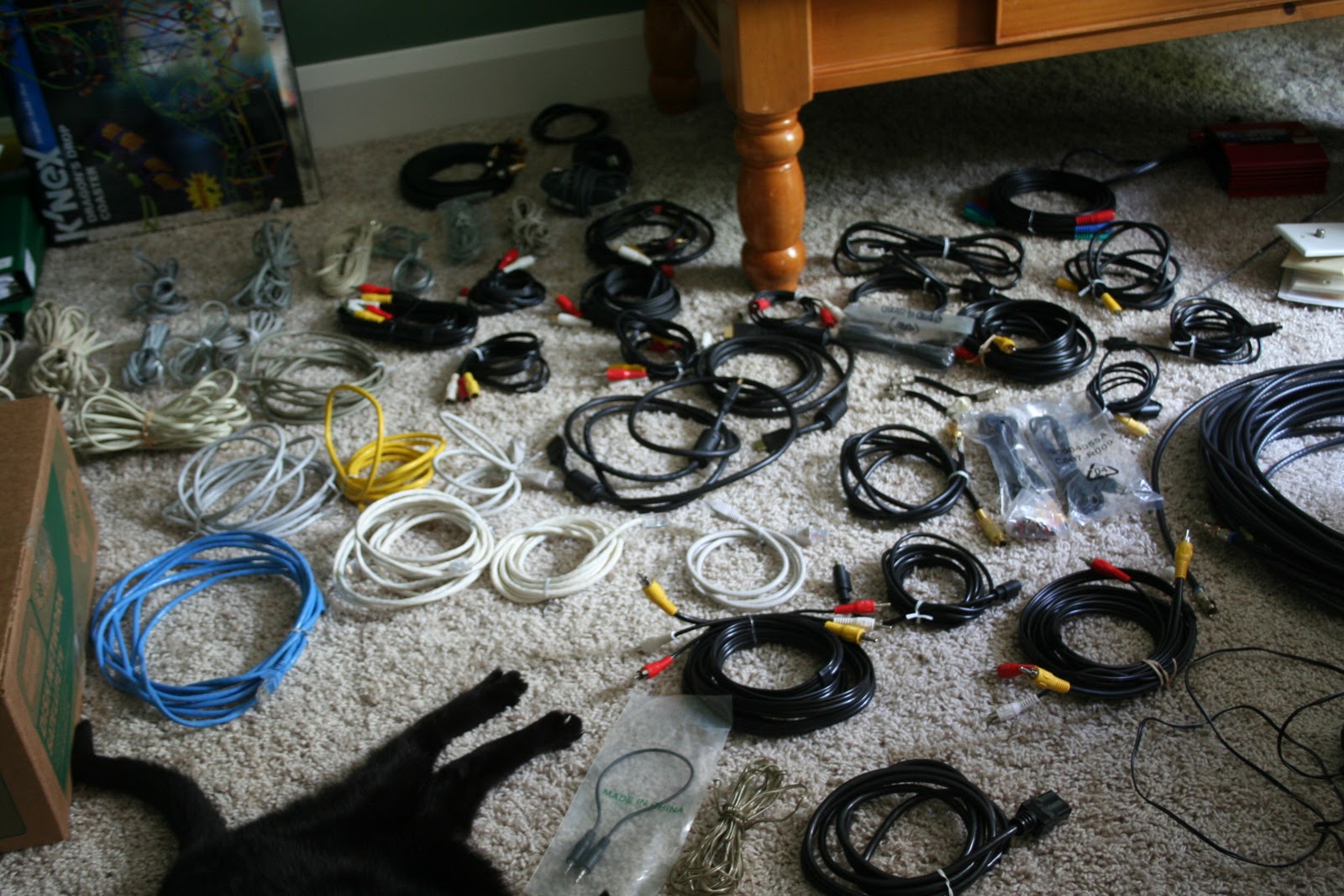 Here's a sampling of my piles. This is only a fraction of all the cords and cables we had!