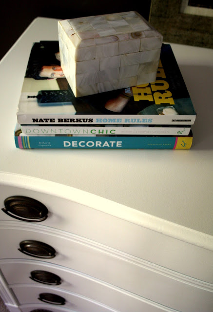 Did you spy Sir Octopus above? This is the room where he landed for good, after much debate. I have a small dresser/chest that I've been considering sitting below Sir Octopus, but is that too much furniture for one room?
